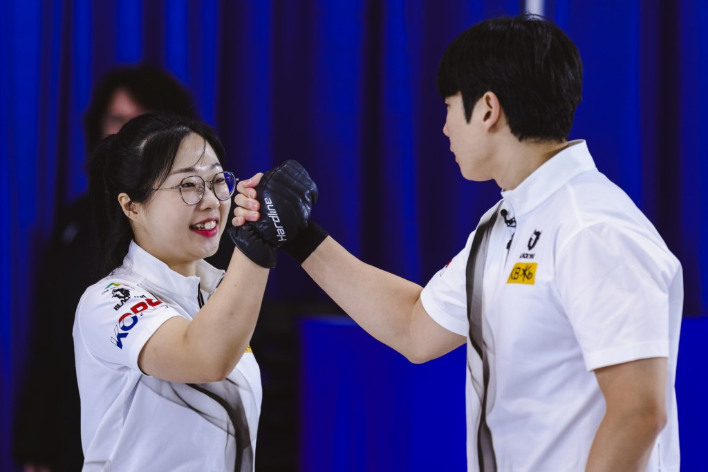By the seventh end, Korea held a 6-3 lead, and when China’s Ye Zixuan got her angles wrong on an in-off attempt, she gave Korea a steal of one more point and a 7-3 lead.