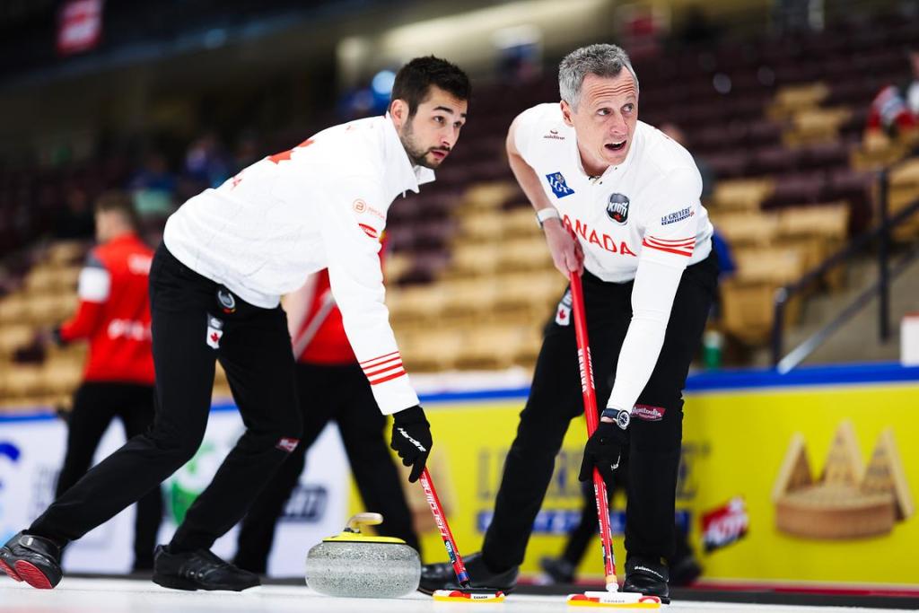 Against Poland, the game was tied at 2–2 when, in the fifth end, Canada’s skip Matt Dunstone played a draw into the house to score two points and take a 4–2 lead going into the break.