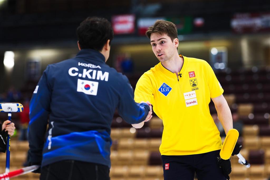 Meanwhile, by their own admission, Sweden struggled to beat Korea in their morning game on Monday, being forced all the way to an extra end by the three-man Korean team before winning by 7–6.